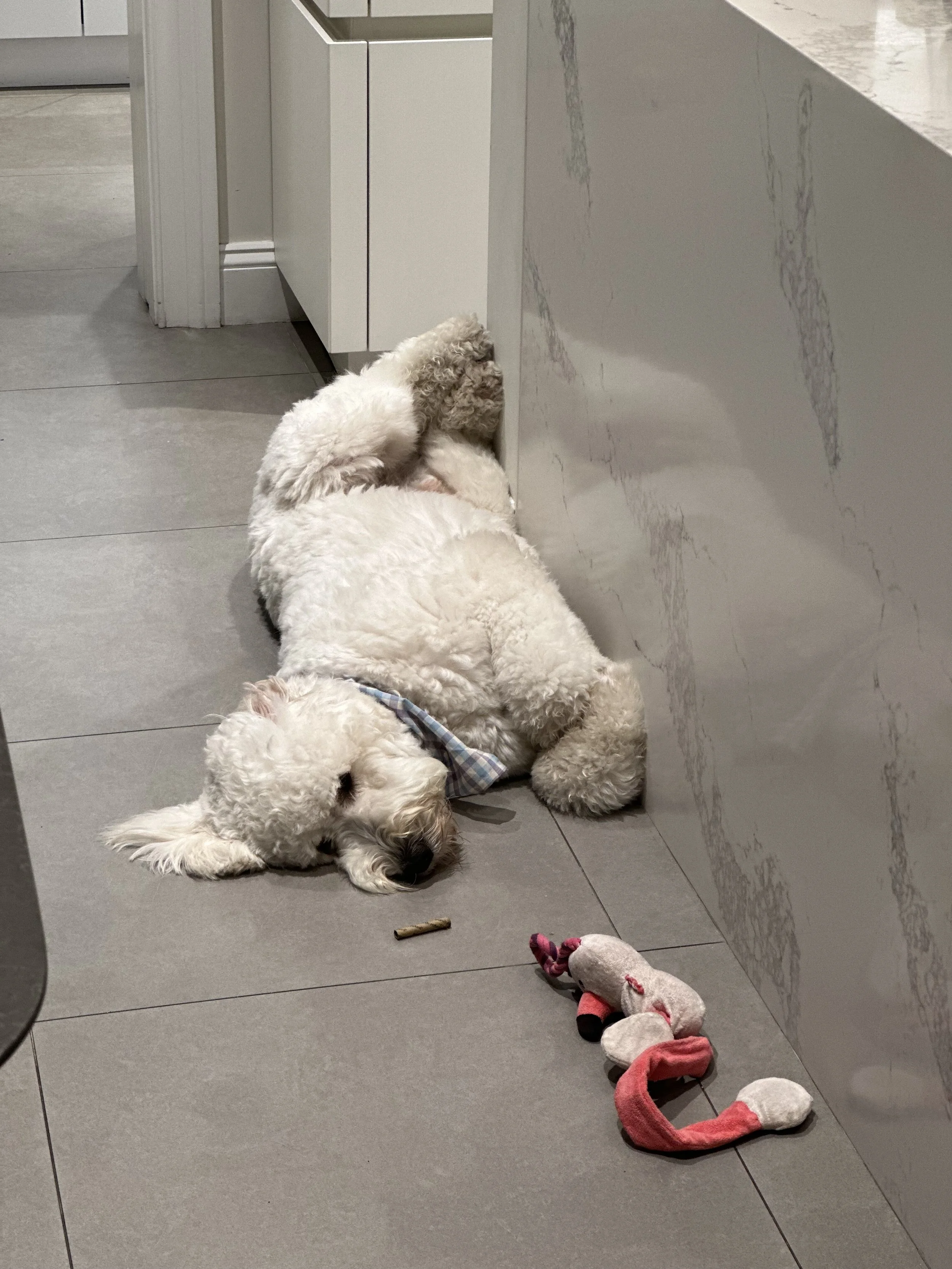 See what my dad does when I put my feet up on the wall? scratchy scratchy daddy. You no like.